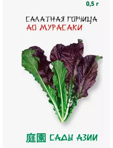 Розетка листьев двухцветная. Верхние листья пурпурно фиолетовые, нижние насыщенного зеленого цвета. Для сбора молодой зелени достаточно 20-25 дней от всходов (10см). Полноценная зелень на 45 день (40 см.) Молодая зелень обладает очень легким островатым привкусом. Вкус зрелой зелени более насыщенный. Рекомендуется в свежем виде для приготовления смешанных салатов, добавления к мясным закускам, бутербродам. В кулинарной обработке для добавления в супы, обжаренная - как гарнир. Очень хорошо добавлять при консервации томатов и огурцов.