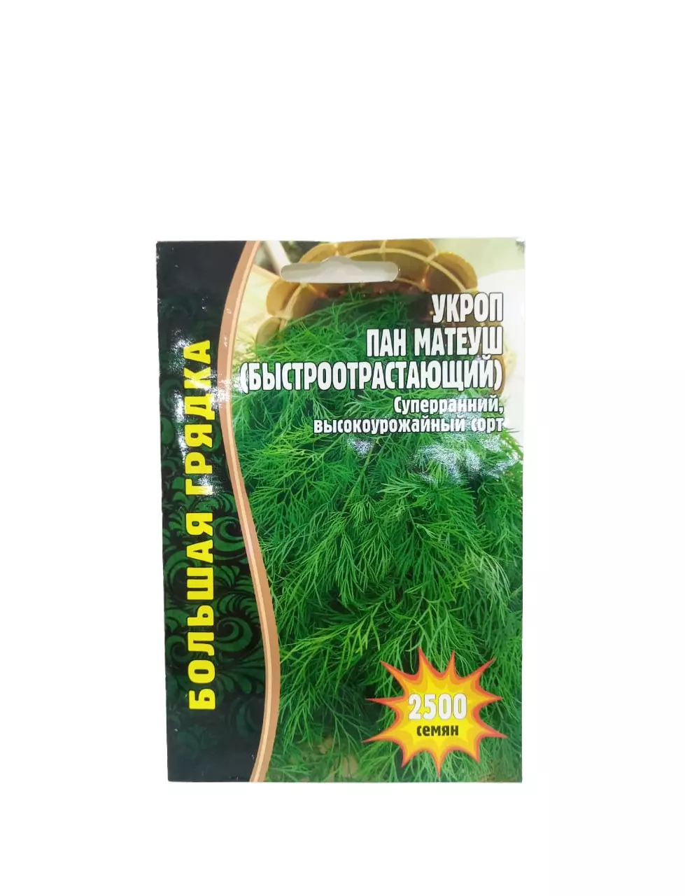 Прекрасный очень ранний, сильнооблиственный и высокоурожайный сорт польской селекции, дающий первую срезку на зелень уже через 25-35 дней от всходов. При раннем посеве в защищенный грунт получение свежей высокоароматичной зелени возможно уже во второй половине апреля-мае. Стебель короткий, листья крупные, длинные, сильнорассеченные, зеленая масса одного растения 30-35г. Взрослое растение имеет высоту 100 см, форму компактную, зонтик среднего размера. Устойчив к полеганию и заболеваниям. ПОСЕВ: сеют укроп под зиму или ранней весной. Применяют многократные весенне-летние посевы с интервалом 10-12 дней. Глубина заделки семян 1-2см. Предпочитает супесчаные, легкосуглинистые, хорошо окультуренные, нейтральные почвы.