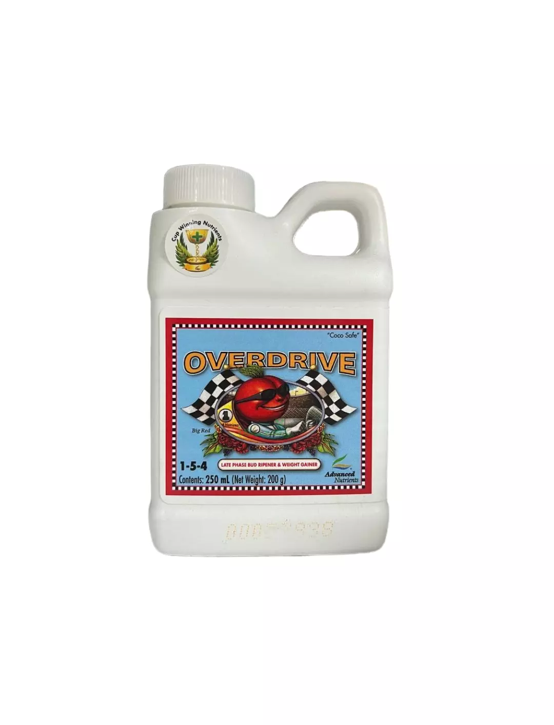 Overdrive - это усилитель, разработанный специально для использования в конце цикла цветения. Как только Big Bud сделает свою работу по созданию множества точек прорастания и цветов, Overdrive отвечает за набухание соцветий, одновременно улучшая их качество и вес. Повышая урожайность, которой вы никогда не получали раньше, Overdrive поразит вас, ведь ваши посевы будут набирать вес и размер прямо у вас на глазах! Overdrive полностью совместим с базовыми удобрениями Advanced Nutrients и не влияет на их технологию "pH Perfect".