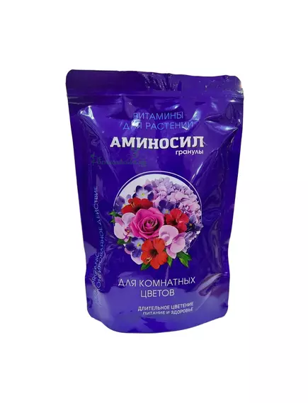 Витамины для комнатных цветов Аминосил в гранулах - это специально разработанный комплексный продукт, который способен обеспечить все необходимые элементы питания для здорового и красивого роста самых разных комнатных растений, включая орхидеи и фиалки, гортензии и розы, бегонии и азалии и другие цветы.