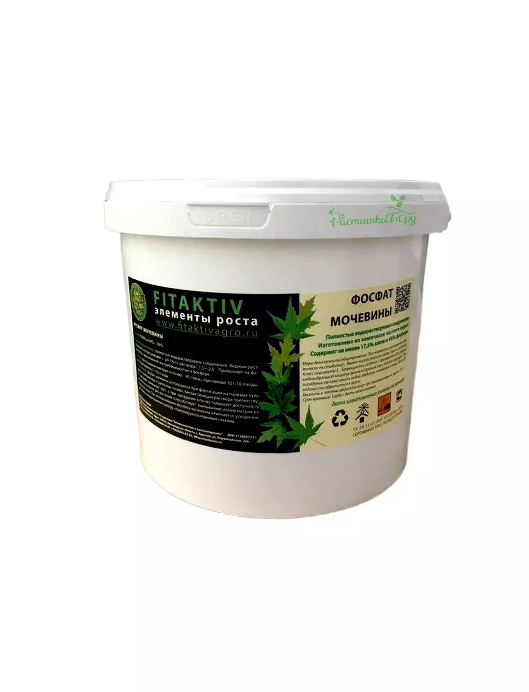 Фосфат мочевины удобрение со 100% усвояемостью фосфора растениями. Растворяется в воде и предотвращает засорение капельных труб. При попадании в почву увеличивает доступность питательных элементов для растений, ускоряет цветение и плодоношение, стимулирует корневую систему. Используется как отдельно, так и в сочетании с другими удобрениями.