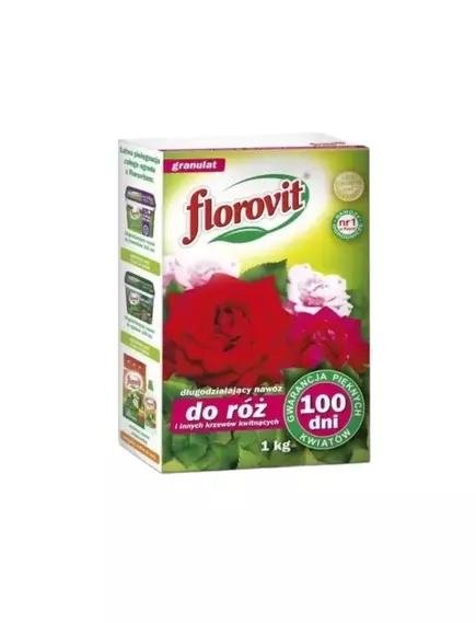 Florovit для роз - Комплексное удобрение, предназначенное для подкормки всех видов роз и других цветущих кустарников. Используется как для новых насаждений, так и для многолетних растений.