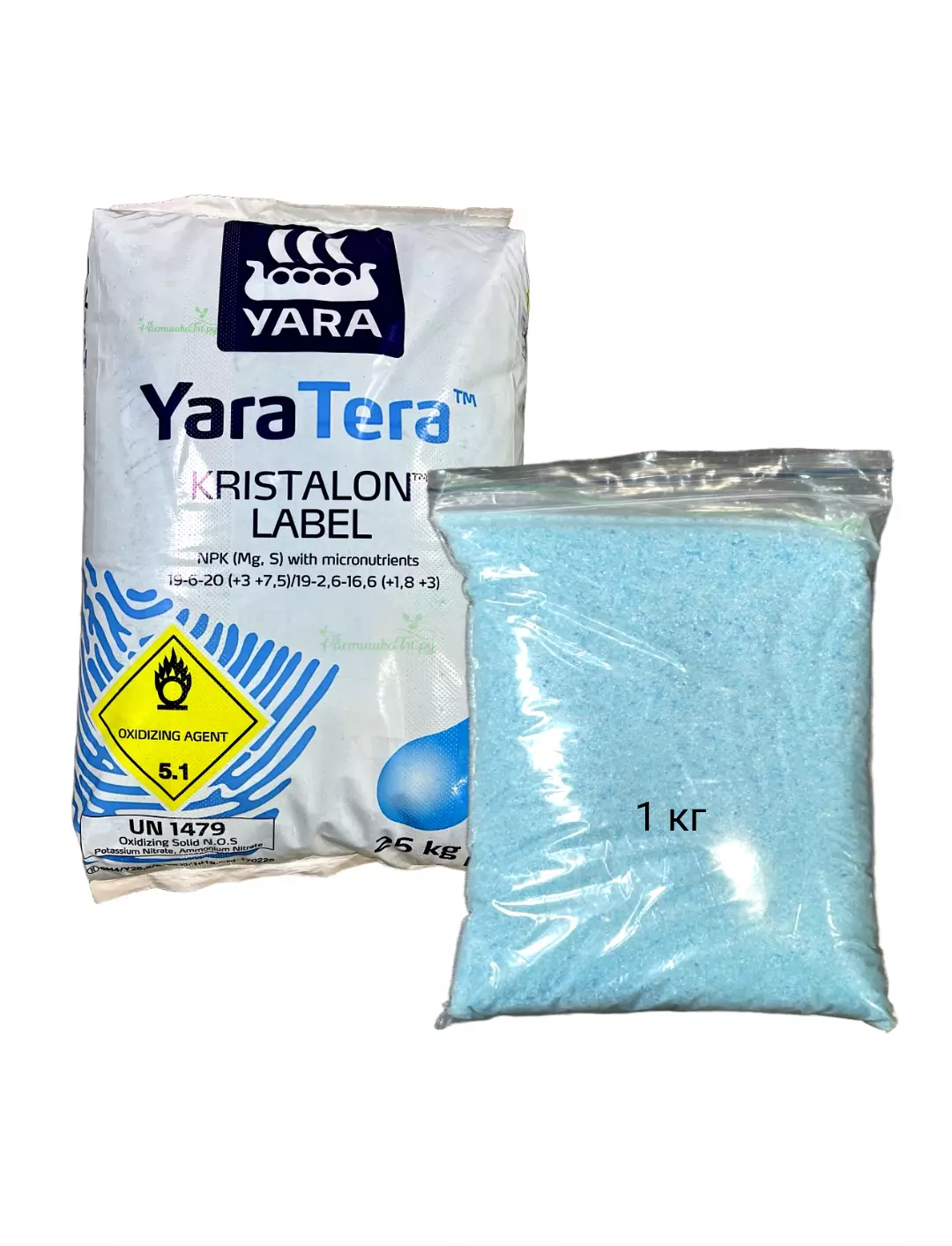 YaraTera Kristalon Blue (ЯраТера Кристалон Голубой) 19-6-20 – это высокоэффективное, полностью водорастворимое NPK-удобрение, специально разработанное для стимуляции активного вегетативного роста растений. Эта формула идеально подходит для тех периодов, когда культурам необходимо нарастить значительную зеленую массу, сформировать крепкие стебли и пышную листву.