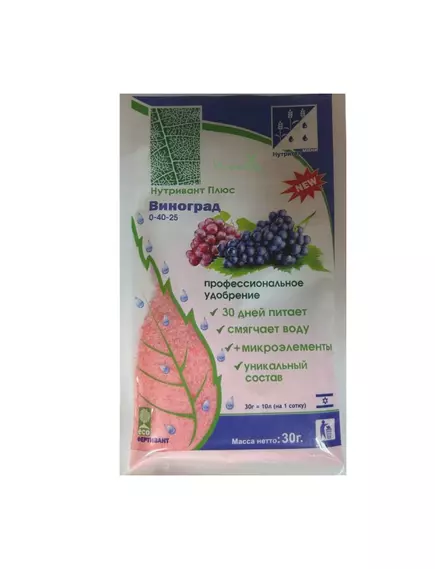 Нутривант Плюс Виноград - фосфорно-калийное удобрение с микроэлементами и фертивантом для листовой подкормки винограда.