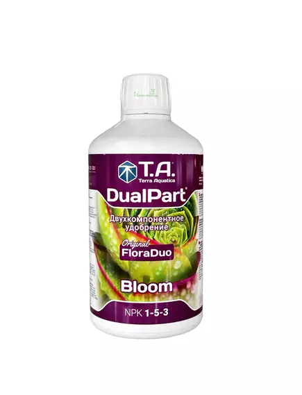 Второй из двух компонентов высокоэффективной двухкомпонентной системы минерального удобрения, разработанной для фазы цветения и плодоношения растений. T.A. DualPart Bloom обеспечивает сбалансированное питание для обильного цветения, формирования крупных плодов/соцветий и максимального урожая. Используется в комбинации с T.A. DualPart Grow на протяжении всего жизненного цикла растени