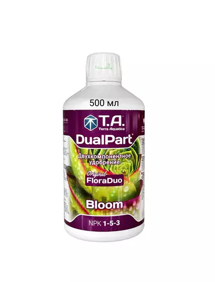Второй из двух компонентов высокоэффективной двухкомпонентной системы минерального удобрения, разработанной для фазы цветения и плодоношения растений. T.A. DualPart Bloom обеспечивает сбалансированное питание для обильного цветения, формирования крупных плодов/соцветий и максимального урожая. Используется в комбинации с T.A. DualPart Grow на протяжении всего жизненного цикла растени