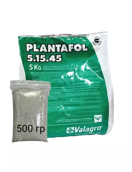 Plantafol — комплексное удобрение для внекорневой подкормки растений, содержащее необходимые минералы в правильной концентрации и форме, легко усваиваемой листьями растений для ускорения их роста и вегетации. • 30.10.10 — преобладание азота. Рекомендован в период активной вегетации, роста и формирования культур. • 10.54.10 — преобладание фосфора. Наиболее эффективен в период образования почек, формирования корневой системы. Оптимален в качестве подкормки зелёной массы до и во время цветения. • 5.15.45 – преобладание калия. Способствует ускорению обменных процессов в растениях. Положительно влияет на развитие плодов. Укрепляет иммунную систему растений, усиливает их сопротивляемость патогенам. • 20.20.20 — универсальный состав. Подобрано оптимальное сочетание всех необходимых растениям питательных веществ. Применение возможно на всех стадиях развития культур. Преимущества: • Улучшает вегетацию и плодоношение растений. • Повышает качество продукции. • Укрепляет иммунную систему растений. • Повышает устойчивость при неблагоприятных условиях. • Содержит прилипатель. • Не оставляет налета на листьях. Производитель: Италия.