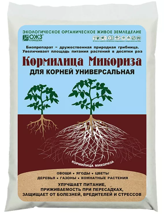 Основная информация Кормилица Микориза - биопрепарат, дружественная природная грибница. Увеличивает площадь питания растений.