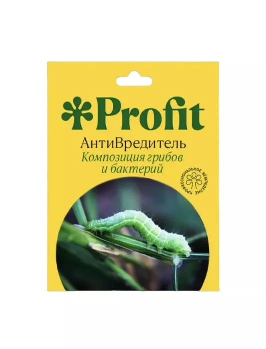Основная информация PROFIT Композиция грибов и бактерий АнтиВредитель - субстрат для защиты растений от личинок и взрослых вредителей.