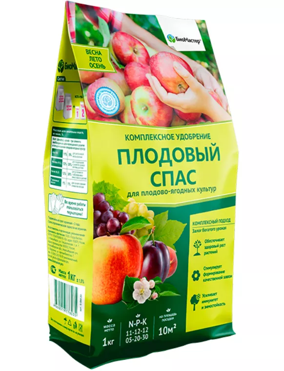 Подкормка проводится ранней весной до цветения. Удобрение зеленого цвета распределить под кроной кустов или деревьев, аккуратно заделать. Норма внесения – 100-50г/м2.
