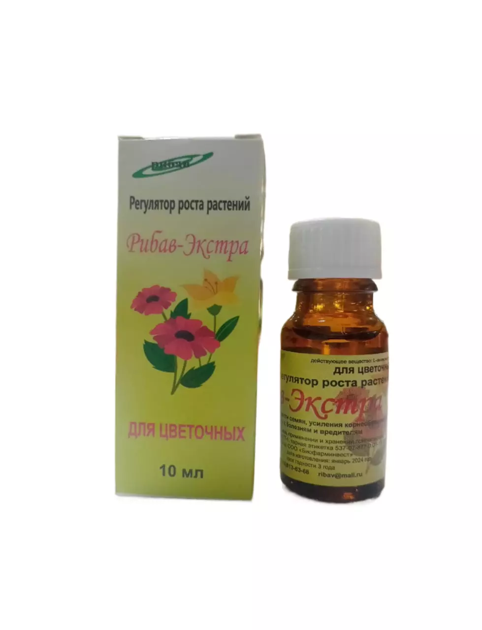 Регулятор роста растений «Рибав-Экстра» для цветов содержит уникальный природный комплекс биологически активных веществ, полученных из микоризных грибов, выращенных из корня женьшеня. В состав препарата входят аминокислоты (цистин, гистидин, метионин, лизин, аргинин, глютаминовая и аспарагиновая кислоты, серин, глицин, треонин, аланин, тирозин, валин, фенилаланин, лейцин и изолейцин), липиды, пептиды, ферменты и витамины (В2, В6, Н, В12).