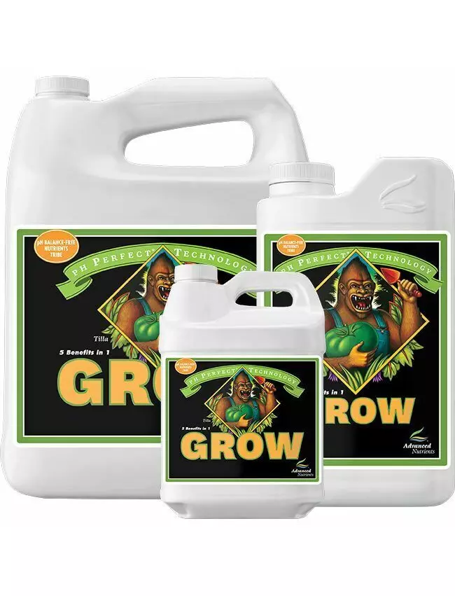 Основная информация Grow PH Perfect от Advanced Nutrients - это удобрение, подходящее для вегетативной фазы растений с тем удобством, что больше не нужно контролировать PH. Grow PH Perfect является частью набора трехкомпонентных удобрений MICRO-GROW-BLOOM . Grow был разработан для фазы роста и сочетается с продуктами Micro и Bloom. Это удобрение - очень универсальный продукт, подходящий для всех видов растений, он гарантирует густые и очень быстрорастущие растения. Advanced Nutrients Grow PH Perfect содержит органические поверхностно-активные вещества, гуминовые и фульвокислоты, аминокислоты и специальную формулу, которая автоматически корректирует pH вашего питательного раствора. PH perfect Grow дает растению определенные питательные вещества для увеличения листьев и ветвей, чтобы подготовить растение к производству очень крупных цветов и поддержанию множества бутонов. Advanced Nutrients Grow PH Perfect можно использовать для выращивания сельскохозяйственных культур: почвы, кокоса и гидропоники. С ЭТОЙ ЛИНЕЙКОЙ УДОБРЕНИЙ ЗАБУДЬТЕ О НЕОБХОДИМОСТИ ПРОВЕРЯТЬ PH. Инновационная формула PERFECT pH для Grow, Micro и Bloom содержит органические поверхностно-активные вещества, гуминовые и фульвокислоты, аминокислоты и эксклюзивную смесь, которая автоматически корректирует pH вашего питательного раствора. Рецепт технологии Advanced Nutrients PH Perfect: Wet Betty - органическое поверхностно-активное вещество, которое снижает поверхностное натяжение воды, облегчая диффузию и усвоение питательных веществ вашими растениями. Гуминовая кислота, которая обеспечивает естественную помощь в транспортировке питательных веществ и витаминов в ваших растениях, так что они растут быстрее и заставляют их развивать более сильные клеточные процессы Фульвокислота, которая ус