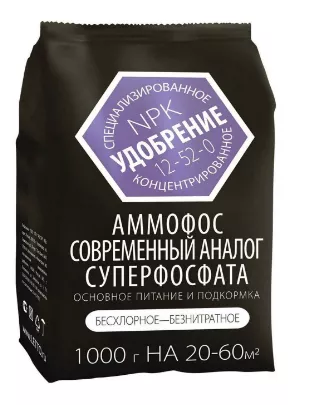 Универсальное азотно-фосфорное удобрение. В неблагоприятных условиях превосходит другие удобрения по эффективности. Удобрение аммофос содержит в два раза больше фосфора, а так же азот, экономично при внесении. Содержит очень важные элементы для жизнедеятельности растений: серу, кальций, магний. Применяют как самостоятельно, так и в смеси с другими удобрениями (аммиачной селитрой, мочевиной, сульфатом калия и хлористым калием). Для основной заправки увлажненных почв, а также для внесения в грядки и для подкормки растений. Удобрение для грунта для основного и предпосевного внесения, для корневой и внекорневой подкормки различных овощных, плодово-ягодных и цветочно-декоративных культур, рассады, садовых культур и других на любых типах почв. Также применяется для удобрения всех видов комнатных растений.