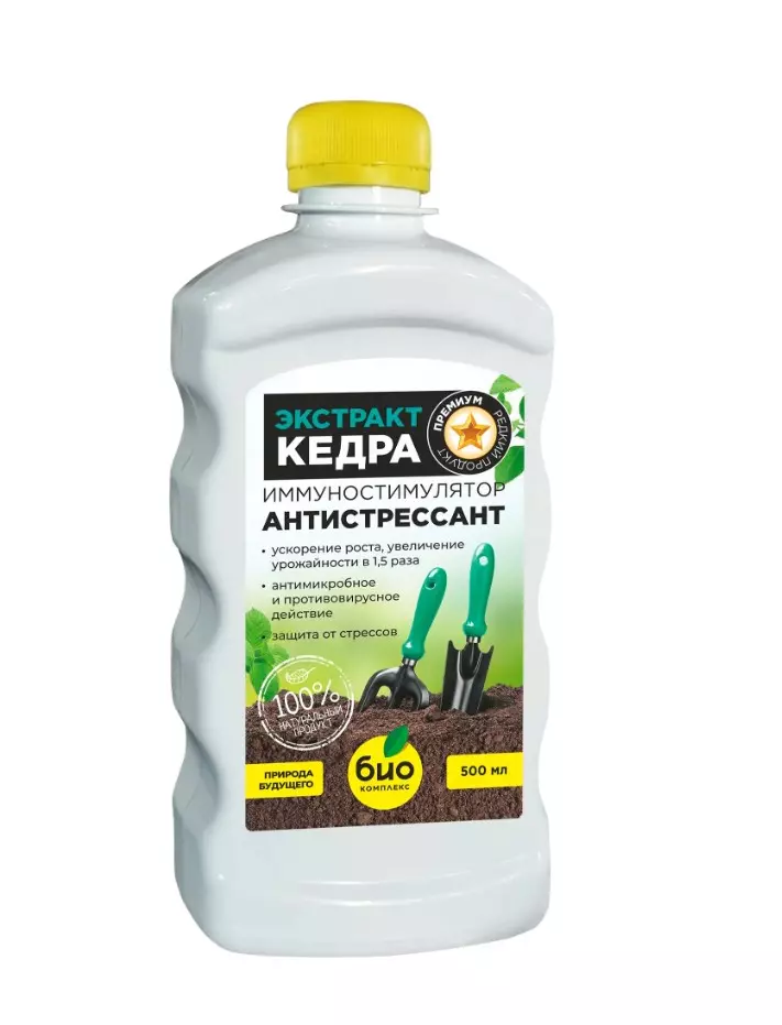 Водный экстракт кедра сибирского — универсальное удобрение с антибактериальными свойствами, которое служит стимулятором роста и развития растений. Оно содержит эфирные масла, витамины и микроэлементы, улучшающие обмен веществ и защищающие от инфекционных и грибковых заболеваний, а также стрессовых факторов. В результате применения удобрения растения становятся здоровыми, увеличивается урожайность, плоды приобретают насыщенный вкус и аромат, а их сохранность улучшается.