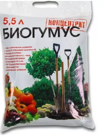 Биогумус - удобрение с множеством полезных элементов, которые улучшают структуру почвы и стимулируют рост и плодоносность растений. Это также и микробиологическое удобрение, в нем есть микроорганизмы, создающие почвенное плодородие. Удобрение легко и постепенно усваивается растениями в течение всего цикла своего развития. Биогумус в 10-15 раз эффективнее любых известных органических удобрений и совершенно безвреден на любых почвах. Наблюдается повышение урожайности на 30-50%! Может использоваться как самостоятельный грунт.