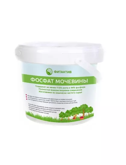Фосфат мочевины удобрение со 100% усвояемостью фосфора растениями. Растворяется в воде и предотвращает засорение капельных труб. При попадании в почву увеличивает доступность питательных элементов для растений, ускоряет цветение и плодоношение, стимулирует корневую систему. Используется как отдельно, так и в сочетании с другими удобрениями.