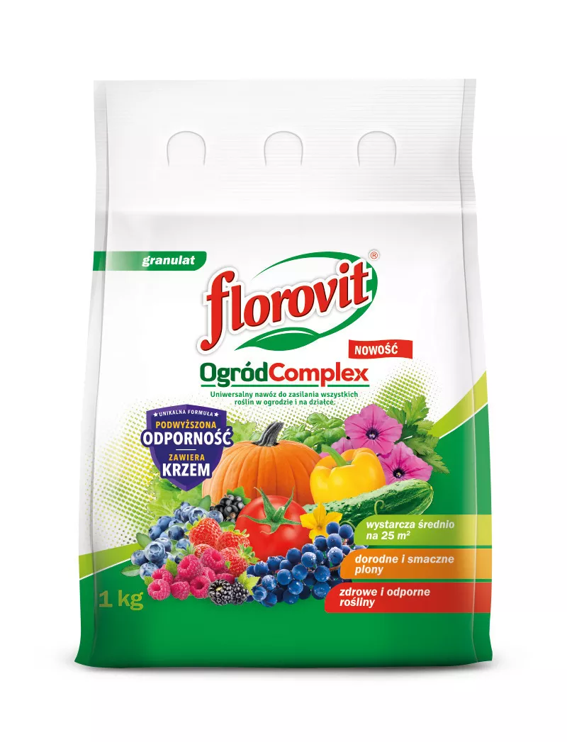 Флоровит универсальное гранулированное для растений Сад Complex - удобрение, водорастворимые гранулы которого содержат все ингредиенты, необходимые для правильного роста и развития растения. Флоровит Садовый комплекс содержит кремний, который необходим для правильного роста и развития деревьев, плодовых кустарников, овощей, декоративных растений и многолетних газонов.
