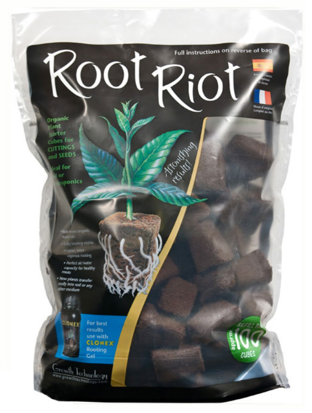 Кубики на основе торфа имеют идеальную структуру, обеспечивающую необходимый уровень воздухапроницаемости и влагоемкости, способствующие быстрому развитию корней. Root Riot можно охарактеризовать как универсальную среду для проращивания. Они подходят для клонирования, а также для выращивания растений из семян, используются для гидропонного выращивания, так и в почве. Кроме того, они имеют оптимальные значения EC и pH, которые остаются неизменными даже после насыщения водой; все благодаря свойствам материала, который снижает риск последствий ошибки садовода.
