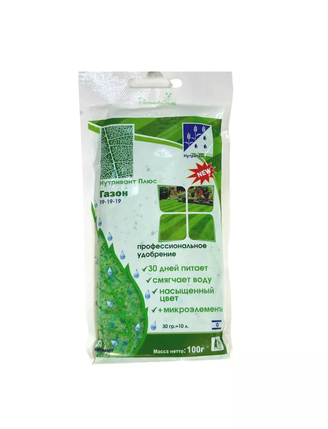 Нутривант плюс Газон 19-19-19Азотосодержащее фосфорно-калийное удобрение с микроэлементами и фертивантомНазначение: для поверхностной обработкиДействие:Восполняет недостаток макро- и микроэлементовУдерживает питательные вещество на листе до 30 днейПовышает устойчивоть к различным заболеваниям и стрессамСмягчает "жесткую" воду нормализует pHУкрепляет растения способствует интенсивному развитию зеленой массыМасовая доля питательных веществ:Азот общий 19%Фосфор водорастворимый (P2O5) 19%Калий (K2O) 19%Магний (MgO) 2%Сера (SO3) 1.6%Бор (B) 0.01%Железо (Fe) 0.08%Марганец (Mn) 004%Цинк (Zn) 002%Медь (Сu) 0005%Молибден (Mo) 0.005%Прилипатель Фертивант +1%-й водный раствор образует стойкий гомогенный растворПлотность слеживания г/мл 125Кислотность (рН 1% раствора) 41 - 42Электропроводность ЕС мС/см 063 - 068Максимальная растворимость в водеt = 20°С г/100 мл 365Способ применения:Листовая обработка: обильно в фазу интненсивного роста (03-05% раствор)Норма расходов рабочего раствора: 10л на 1 сотку