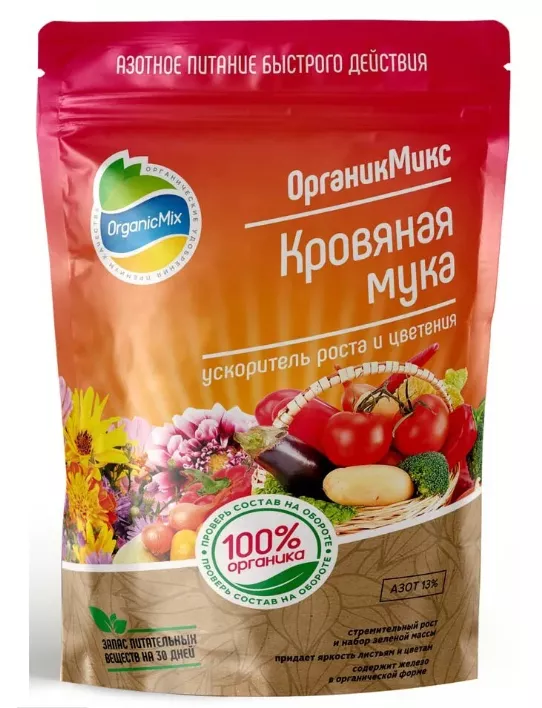 Помните, что кровяная мука разлагается быстро, основную часть питания растение получает через 4-7 дней после внесения. Поэтому рекомендуем не превышать дозировки. Для максимального эффекта вносить 1-2 раза в месяц.