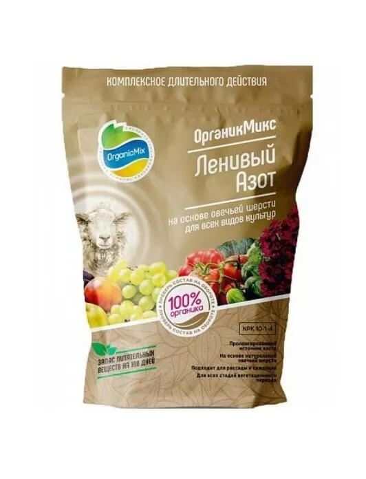 Ленивый Азот это полностью натуральное органическое гранулированное удобрение на основе овечьей шерсти (не менее 50%). Высокое содержание органического азота (10%) и пролонгированное высвобождение питательных веществ обеспечат Ваши растения энергией на протяжении всего вегетационного периода для формирования мощного стебля, пышной листвы, ярких бутонов и соцветий.