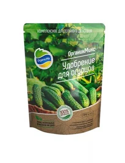 Комплексное органическое, гранулированное удобрение, содержащее все необходимые макро- и микроэлементы для роста, развития и обильного урожая огурцов.