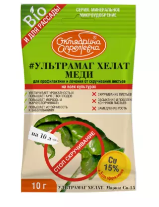 Медь участвует в синтезе белков и углеводов, а так же в процессах фотосинтеза и дыхания, повышает устойчивость растений к грибковым заболеваниям.