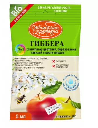 Биологический фитогормон, регулирующий развитие и рост растения. Применяется в качестве стимулятора плодообразования, усилителя ростовых и формообразовательных процессов, также ускоряет срок созревания плодов.