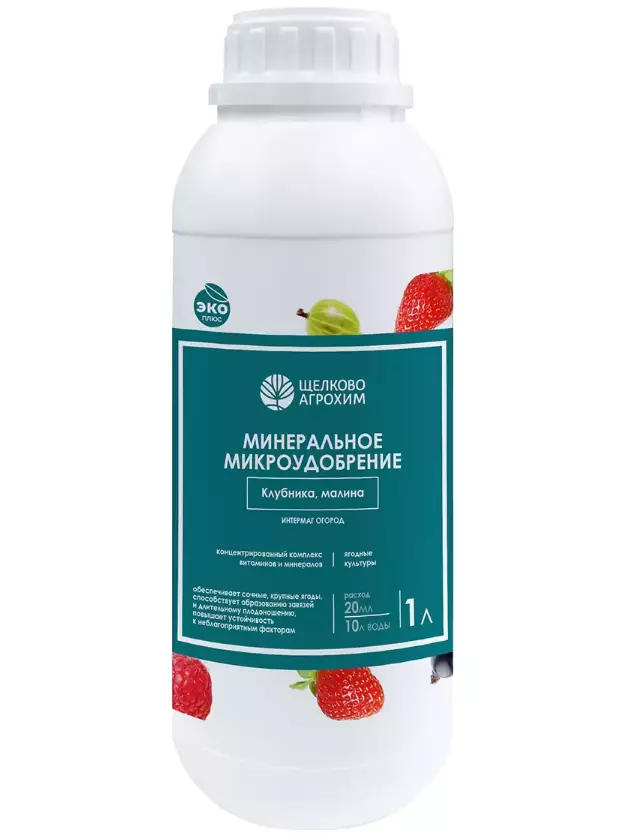 Минеральное микроудобрение для клубники, малины, земляники. Восполняет в растениях недостаток доступных минеральных веществ - азота, фосфора, калия и микроэлементов на протяжении всего вегетационного периода, обеспечивает правильное развитие и высокие качественные показатели урожая. Благодаря хелатной (биологически активной) форме все элементы из удобрения растения усваивают на 100%. Подкормку растений рекомендуется проводить путем опрыскивания или полива растений водным раствором удобрения. Опрыскивать растения следует утром или вечером в сухую безветренную (но не солнечную) погоду, равномерно смачивая листья. Наиболее эффективным является чередование опрыскивания и корневых подкормок, особенно в ранние фазы развития растений.