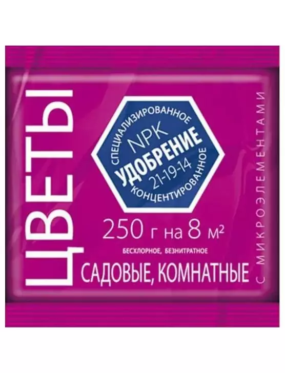 Основная информация Это бесхлорное и безнитратное удобрение с микроэлементами, предназначенное для комнатных и садовых цветов. Содержит большое количество азота и среднее количество фосфора и калия (NPK 21-19-14), что способствует хорошему росту и развитию растений.
