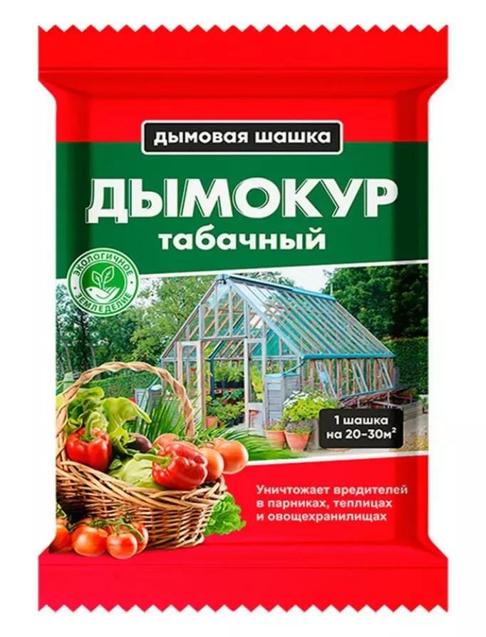 Табачная шашка применяется для обработки теплиц, парников и оранжерей в период активного роста растений для защиты от вредных насекомых. Вырабатываемый дым позитивно влияет на развитие растений благодаря высокому содержанию углекислого газа, который необходим для фотосинтеза. После процедуры окуривания отмечается значительное наращивание зеленой массы, растения становятся менее уязвимыми к различным заболеваниям, а срок созревания плодов сокращается.