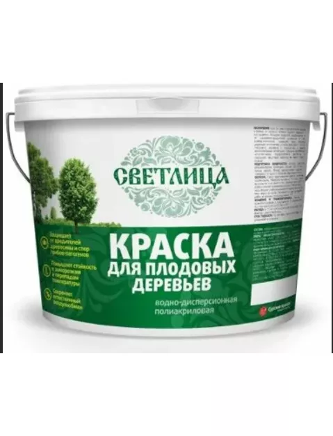 Краска "Светлица" для плодовых деревьев эффективно защищает древесину от вредителей и грибковых патогенов. Увеличивает устойчивость растений к морозу и резким колебаниям температуры, не нарушая естественный воздухообмен.