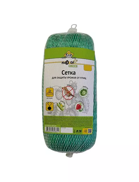 Зеленый цвет сетки гармонично вписывается в окружающий ландшафт, ее можно быстро демонтировать и использовать снова. Изготовленная из прочного полимера, сетка служит способом защиты плодово-ягодных культур от птиц. Ячеистая структура полотна не препятствует опылению, свободно пропускает свет и влагу, не сминает плоды и рассаду, не мешает поливу и обработке растений. По окончании сезона сетку снимают и просушивают.