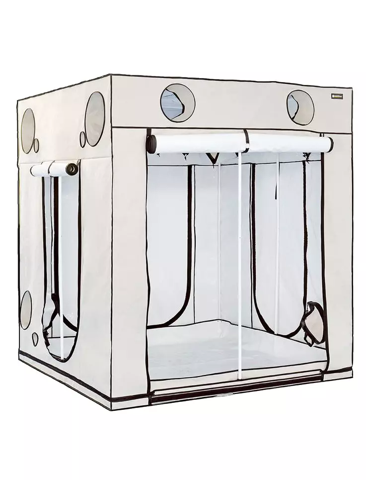 HOMEbox Ambient Q240+ гроутент размером 240x240x220 см обеспечит достаточную площадь для успешного выращивания до четырех крупных растений. Благодаря супер светоотражающей внутренней подкладке PAR+ растения развиваются быстрее и дают больше цветов и плодов, потому что на крону попадает больше света для растений. Ambient Q240+ является явным фаворитом в линейки палаток HOMEbox и может использоваться на всех этапах жизненного цикла растений. Лучшим выбором для данного гроутента будет ДНаТ 600вт, каждый фотон раскроет максимальный потенциал благодаря оптимально отражающему внутреннему покрытию PAR+. Регулируемые вентиляционные окна OmniFlow с защитой от насекомых MicroMesh (размер ячейки 700 микрометров) обеспечивают легкий воздухообмен и способствуют созданию здоровой среды для роста.