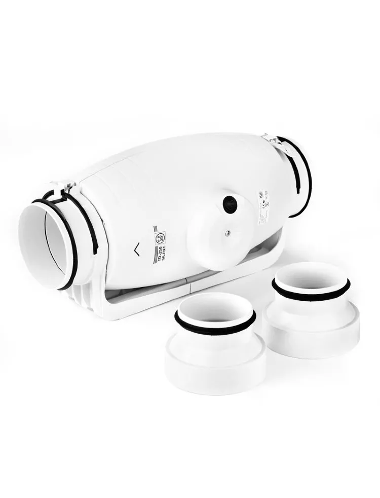 Вентиляторы серии TD разработаны специально для работы с каналами большой протяженности и в условиях повышенных требований к уровню шума в помещении. Имеют достоинства центробежных вентиляторов (большое давление на выходе) и преимущества осевых вентиляторов (большой расход воздуха, малые уровень шума и габаритные размеры). Вентиляторы серии TD предназначены для монтажа в вентиляционных каналах. Вместе с вентилятором поставляются крепежные элементы. Возможен как вертикальный, так и горизонтальный монтаж.