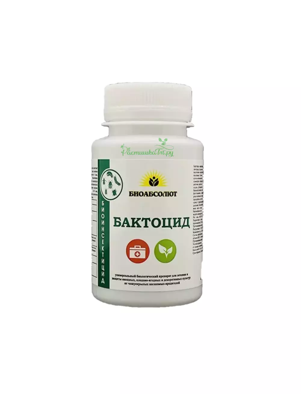 Бактоцид - микробиологический инсектицид для борьбы с чешуекрылыми насекомыми-вредителями овощных, плодово-ягодных и декоративных культур. Обладает двойным действием: активируется в кишечнике вредителей и вызывает его дисфункцию, а также подавляет синтез РНК в клетках насекомых. Также действие препарата способствует снижению уровня плодовитости самок, нарушает сроки метаморфоза (преобразования) личинок и снижает их жизнеспособность. Не рекомендуется совмещать препарат с биологическими препаратами других производителей. При смешивании в рабочем растворе с другими компонентами рекомендуется провести тестирование на отсутствие осадка. Добавляется с химическими пестицидами (гербицидами, инсектицидами, фунгицидами) в баковый раствор в последнюю очередь. Не токсичен, безопасен для людей, животных, птиц, пчел. Не фитотоксичен, пожаробезопасен. Минимальный период ожидания 48 часов. Не вызывает резистентности.