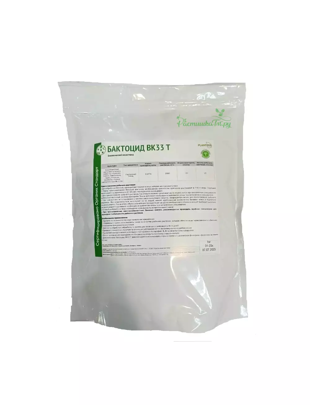 Бактоцид BK33 Т – это биологический препарат на основе бактерии Bacillus thuringiensis var. kurstaki штамма BK33. Выпускается в водорастворимой форме.