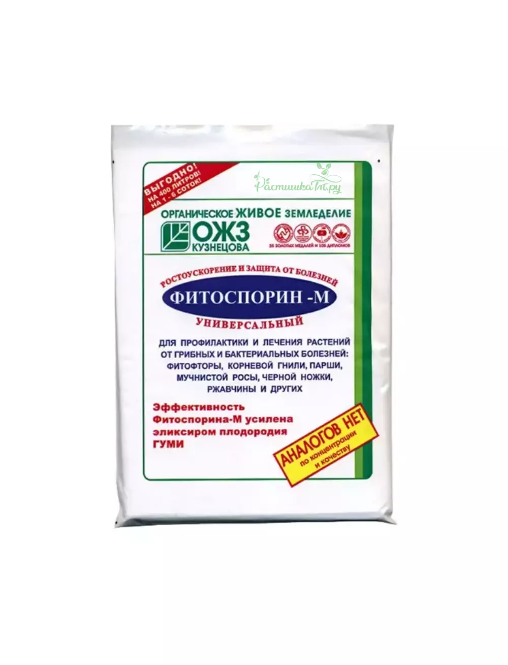 Биофунгицид, в основе которого – полезные фитобактерии в споровой форме, проникающие в ткани растений и вырабатывающие биологически активные вещества для их защиты и стимуляции. Защищает от гнилей, парши, черной ножки, фузариоза, фитофтороза, фомоза, серой гнили, ризоктониоза, альтернариоза, бактериозов, пероноспороза, мучнистой росы, ржавчины, септориоза и др. болезней.