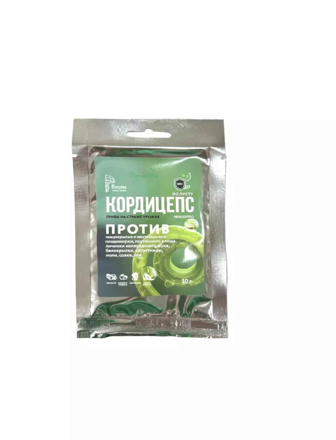 Кордицепс по листу - биоинсектоакарицид кишечно-контактного действия для защиты растений от чешуекрылых и жесткокрылых.