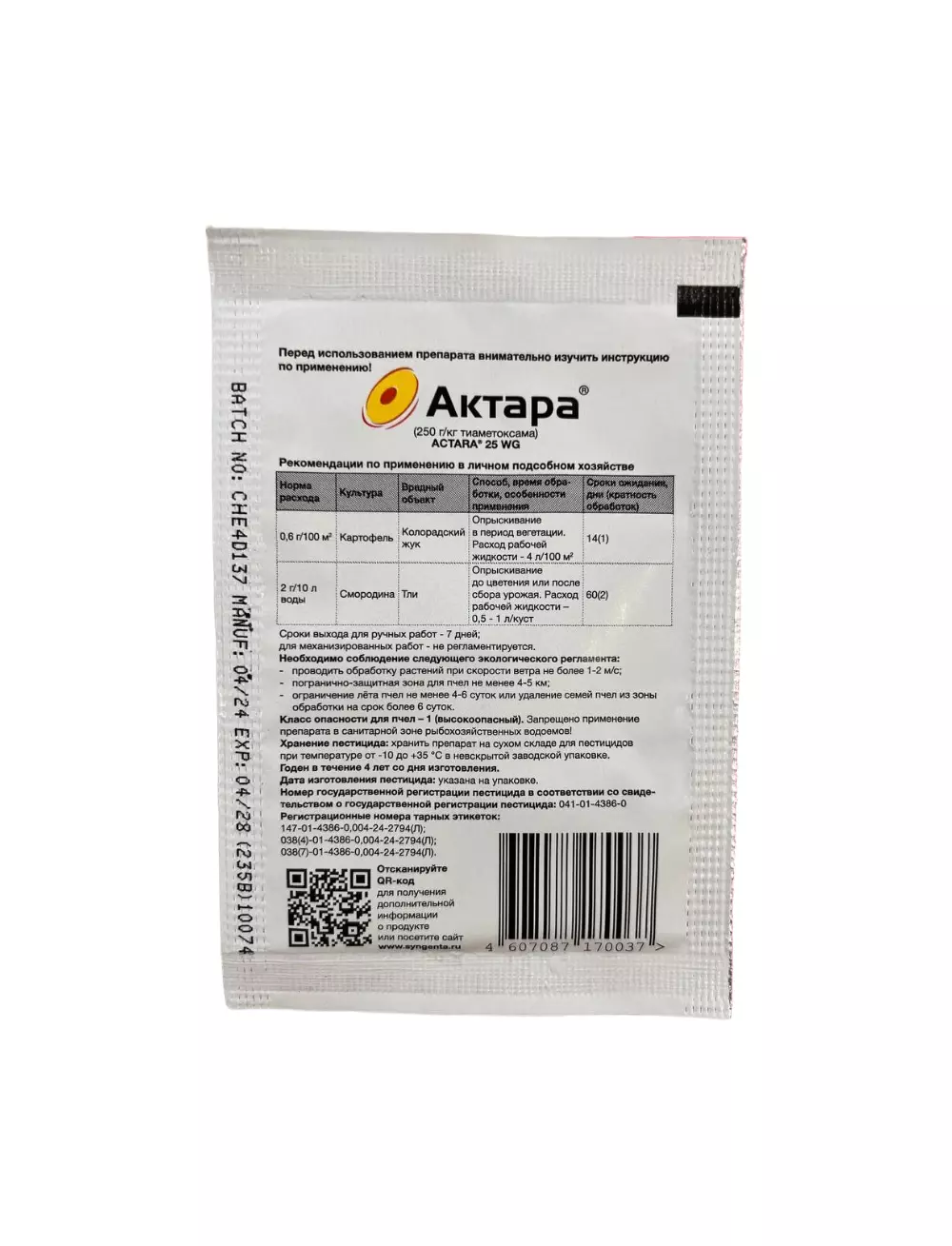Актара ВДГ - инсектицид системного действия предназначенный для защиты различных видов растений от множества вредных насекомых.