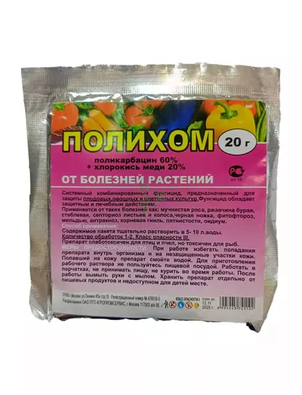 Полихом - фунгицид контактного действия. С его помощью производится лечение фитофтороза у картофеля, томата;