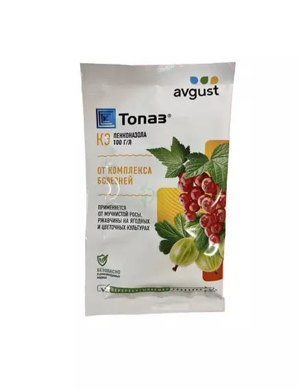 Топаз - системный фунгицид с профилактическим и лечебным действием, обладает высокой эффективностью против возбудителей мучнистой росы и др болезней.