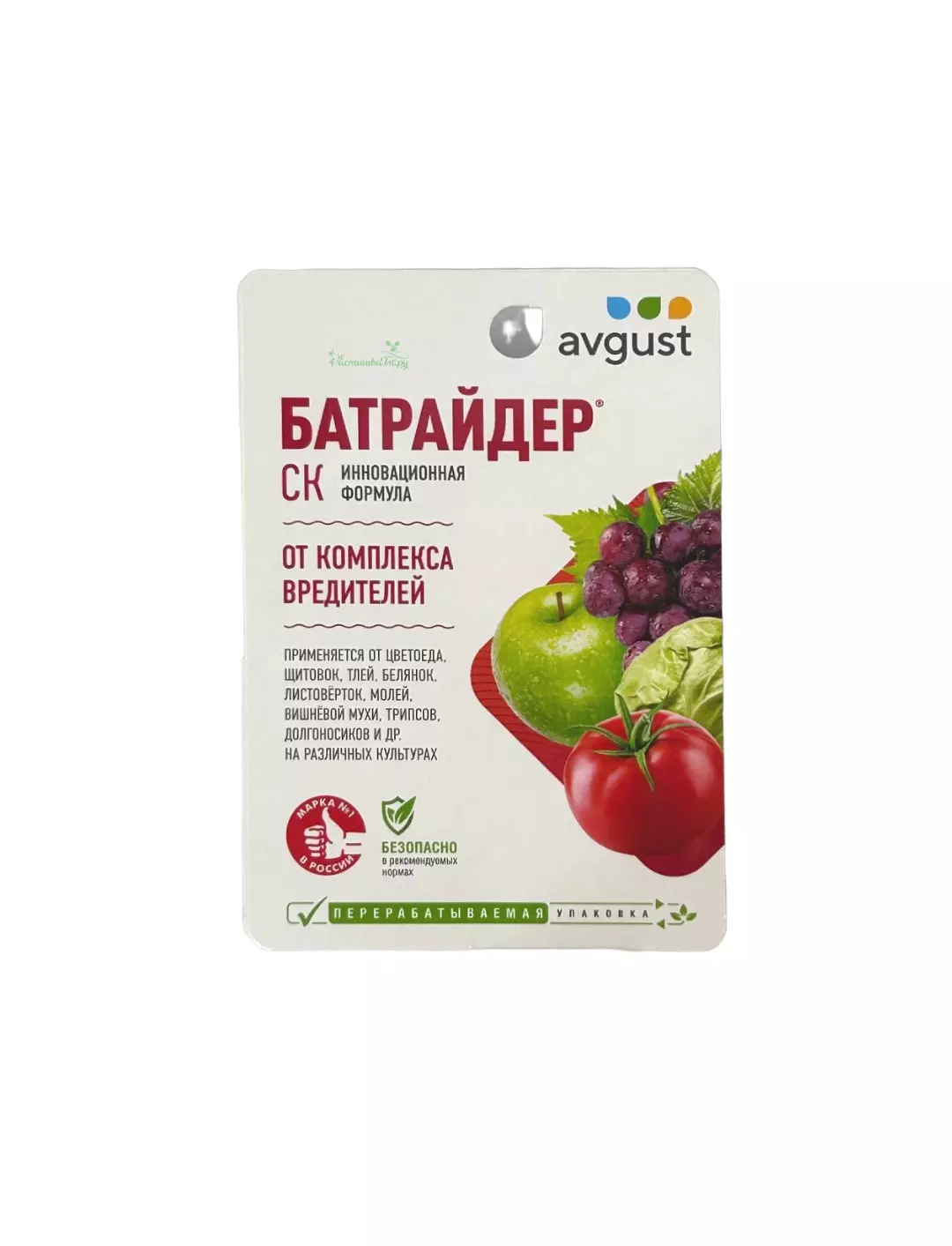 «Батрайдер, СК» — трехкомпонентный инсектицид для ЛПХ для контроля численности вредителей плодово-ягодных, овощных, цветочных и декоративных культур. Характерная особенность – максимальный охват вредителей и эффективность обработок.