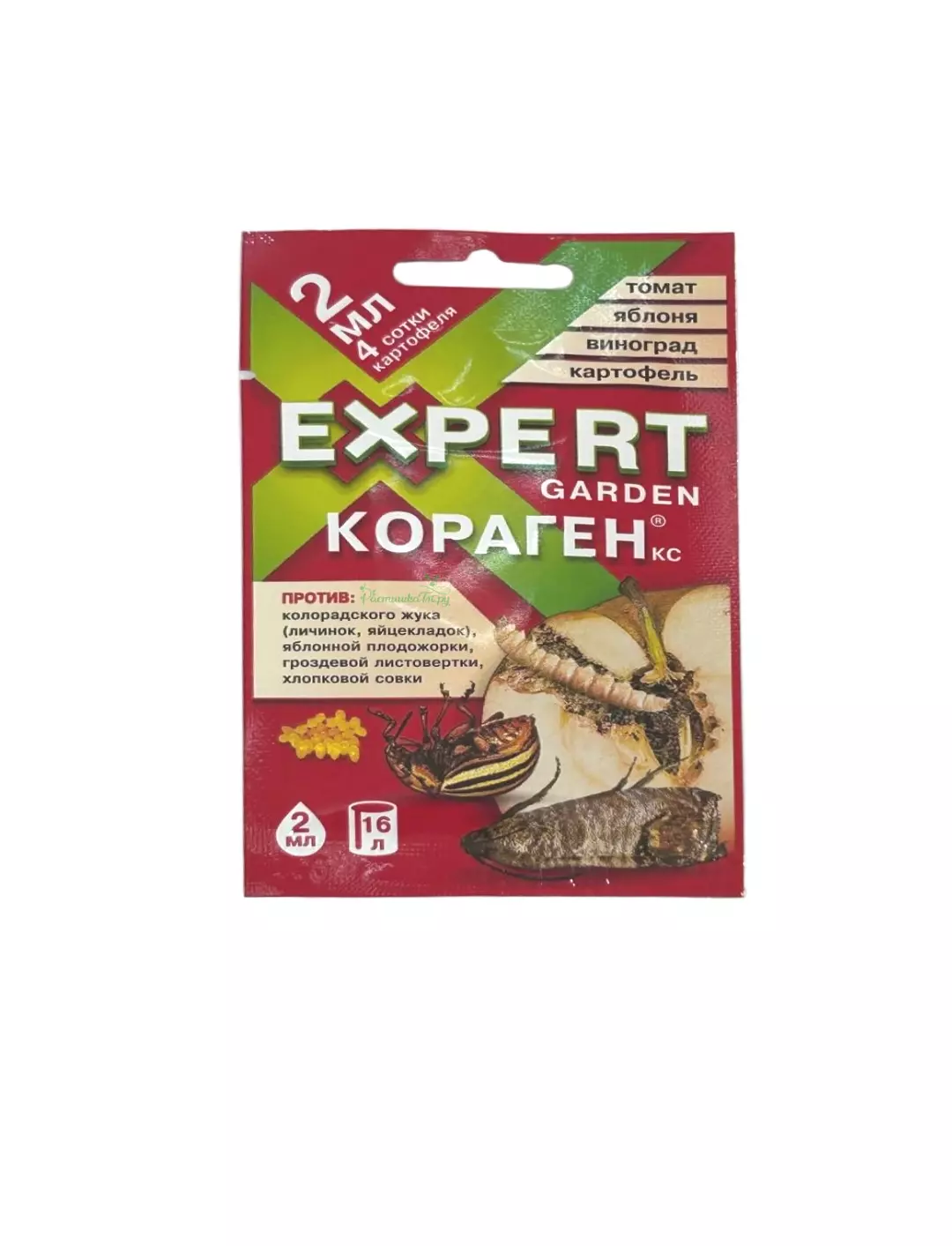 Кораген, КС Expert Garden 1 мл против комплекса вредителей - это инсектицид нового поколения с уникальным действием и высокой эффективностью против колорадского жука, в том числе от личинок, яйцекладок. По способу проникновения препарат «Кораген» относится к системным пестицидам контактно-кишечного действия.