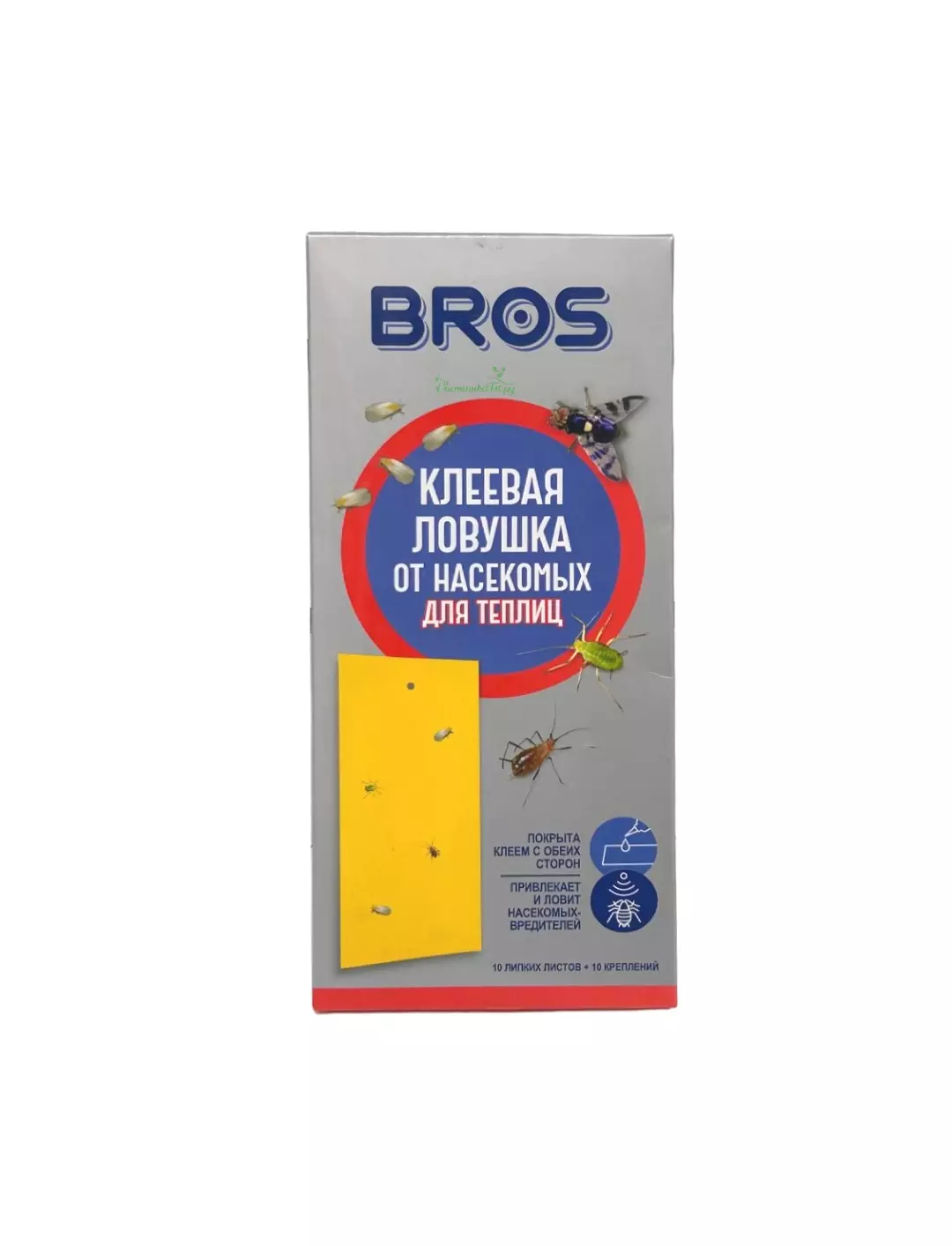 * Насекомые, привлеченные желтым цветом, прилипают к ловушке. Это позволяет определить их наличие и предотвратить дальнейшее размножение.
