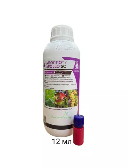 Аполло-уникальный специфический акарицид, высокоэффективен в борьбе со многими видами клещей из семейства паутинных (Tetranychidae), прежде всего с красным плодовым клещом (Panonychus ulmi Koch.);