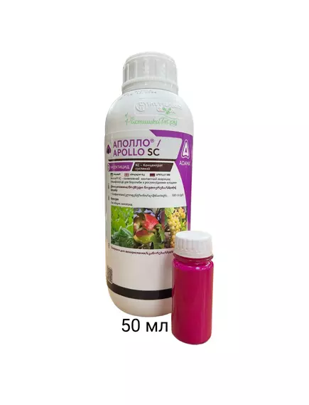 Аполло-уникальный специфический акарицид, высокоэффективен в борьбе со многими видами клещей из семейства паутинных (Tetranychidae), прежде всего с красным плодовым клещом (Panonychus ulmi Koch.);