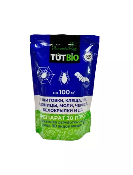 “Препарат 30 Плюс” - это средство для весенней обработки сада от зимующих насекомых-вредителей, таких как клещи, щитовки и другие. Он используется для защиты плодовых деревьев, ягодных кустарников, цитрусовых, винограда и декоративных растений.
