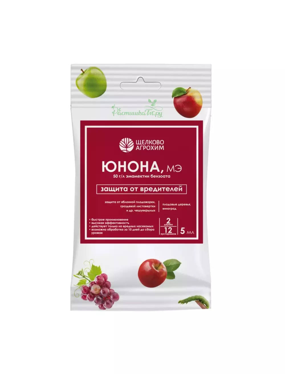 "ЩА Юнона МЭ" – фунгицид системного действия, предназначенный для защиты овощных, плодовых, ягодных и декоративных культур от широкого спектра грибковых заболеваний. Препарат обладает профилактическим и лечебным действием, быстро проникает в ткани растений и обеспечивает длительную защиту.