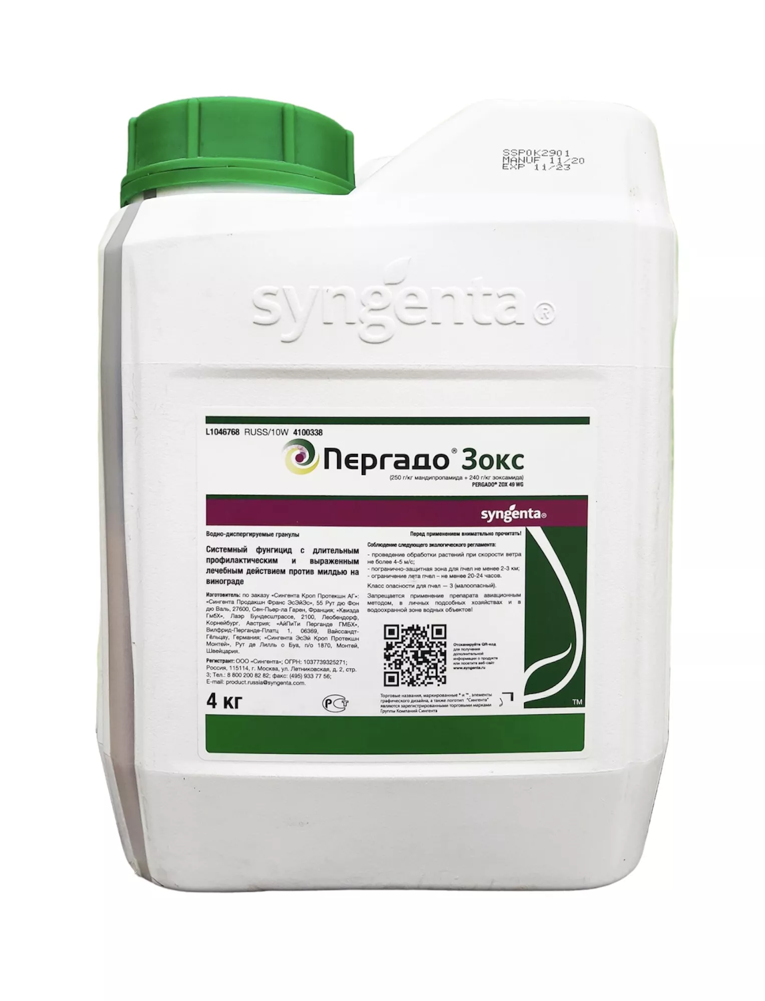 Надежная защита винограда от милдью за счет синергизма действующих веществ и пособности подавлять развитие и распространение спор; ПЕРГАДО ЗОКС обладает отличной дождеустойчивостью; Быстрое проникновение в растение; Активность при низких температурах; Технология LOK + FLO (блокирует и побеждает) гарантирует быструю фиксацию ПЕРГАДО ЗОКС на опушенных листьях и в восковом слое ягод;